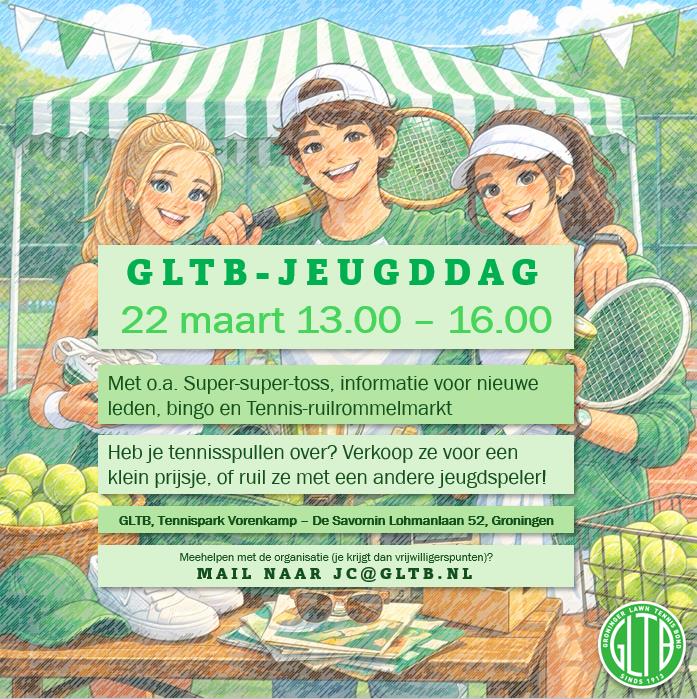 We starten het nieuwe tennisseizoen op 22 maart met een jeugddag. We verwelkomen nieuwe jeugdleden, bieden informatie over de club en competities, organiseren een jeugdtoss én je kan tennisspullen ruilen/kopen/verkopen op de tennis-ruil-rommelmarkt.